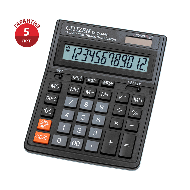УЦЕНКА - Калькулятор настольный Citizen SDC-444S, 12 разрядов, двойное питание, 153*199*31мм, черный