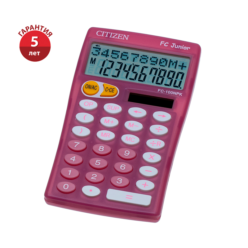 Калькулятор настольный Citizen FC-100NPK, 10 разр., двойное питание, 76*128*17мм, розовый