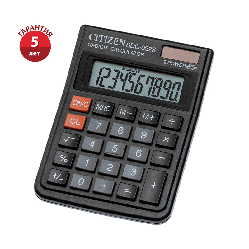 Калькулятор настольный Citizen SDC-022S, 10 разрядов, двойное питание, 87*120*23мм, черный