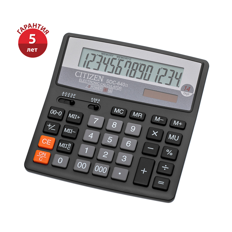 Калькулятор настольный Citizen SDC-640II, 14 разрядов, двойное питание, 156*159*32мм, черный