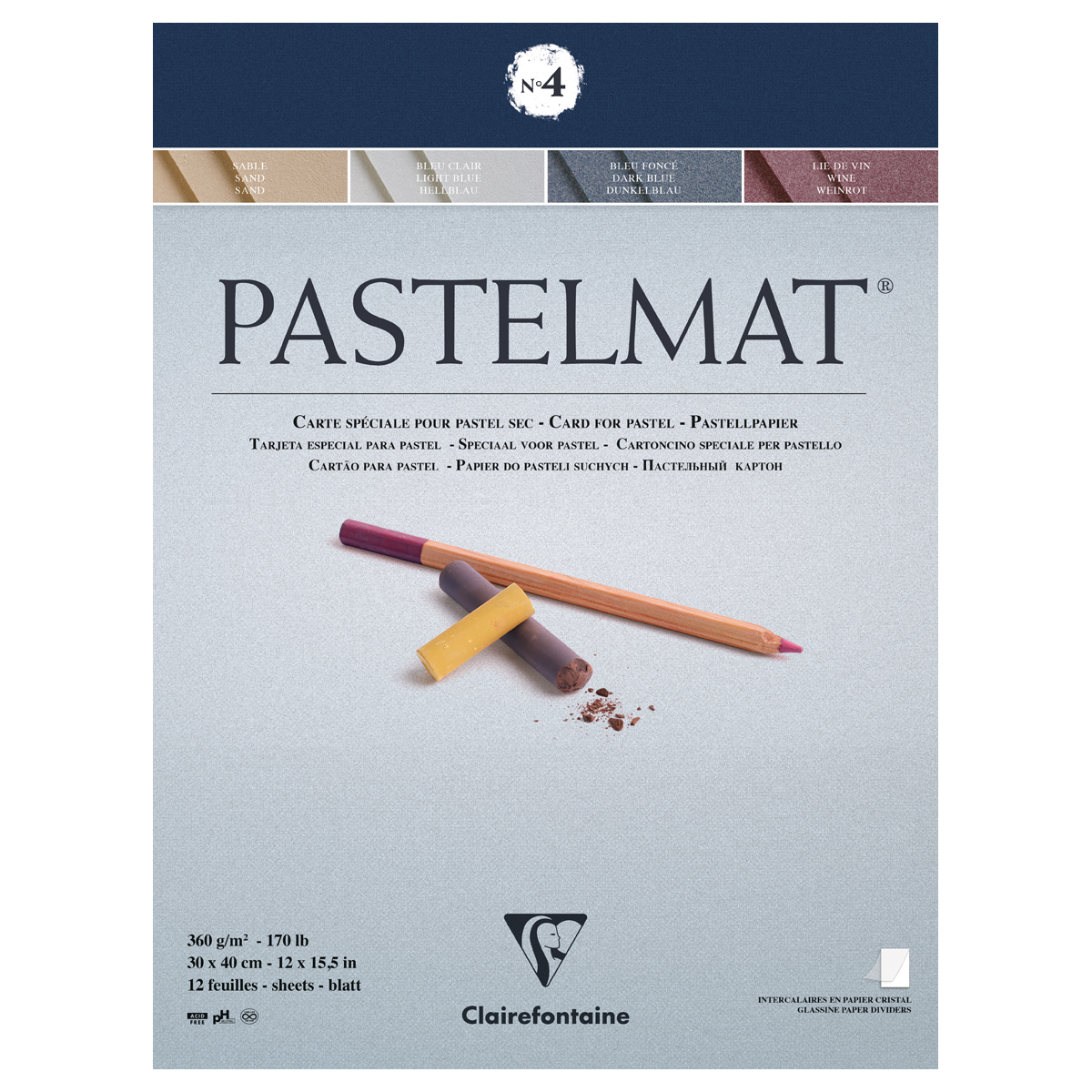 Альбом для пастели, 12л., 300*400мм, на склейке Clairefontaine "Pastelmat", 360г/м2, бархат, цв. блок