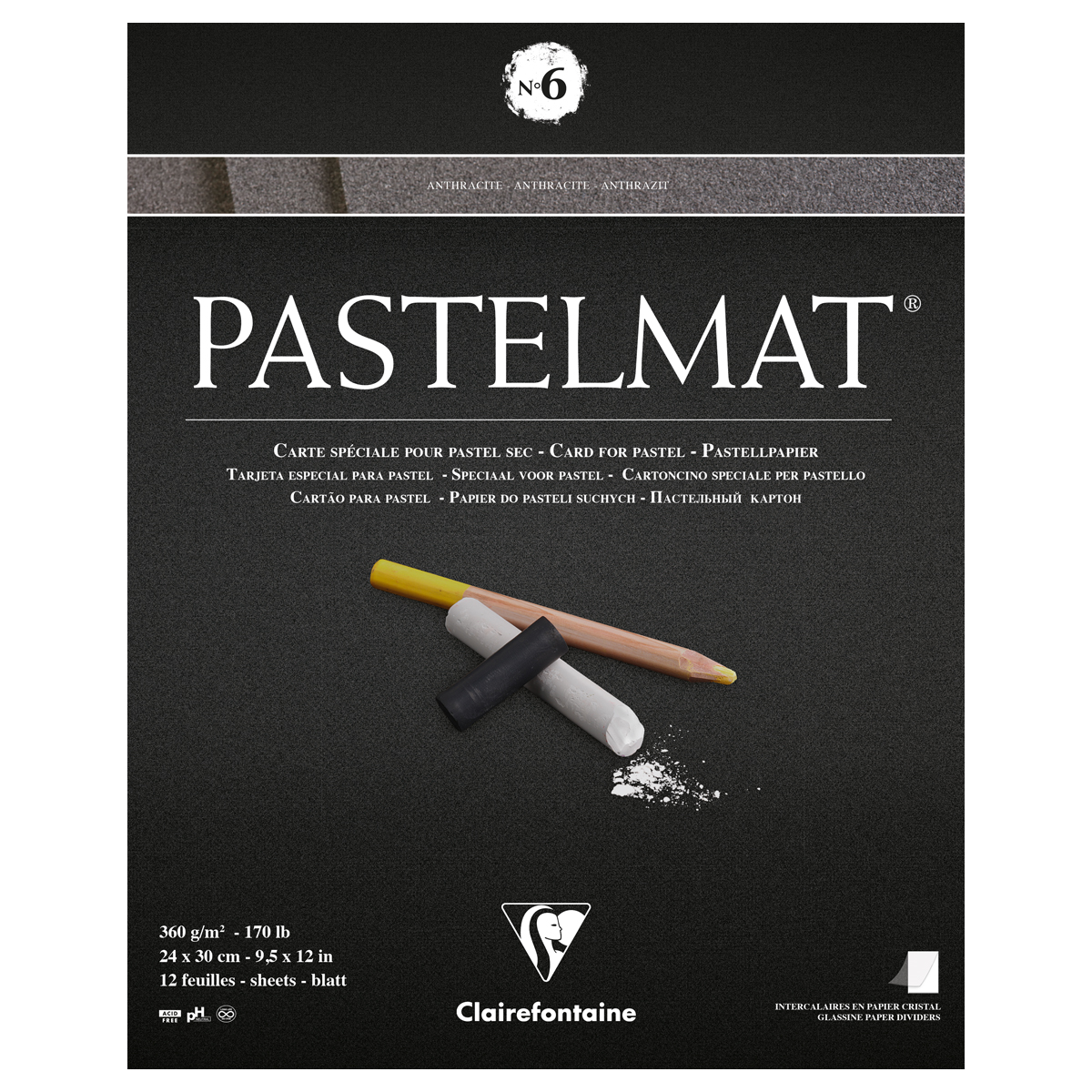 Альбом для пастели, 12л., 240*300мм, на склейке Clairefontaine "Pastelmat", 360г/м2, бархат, антрацит