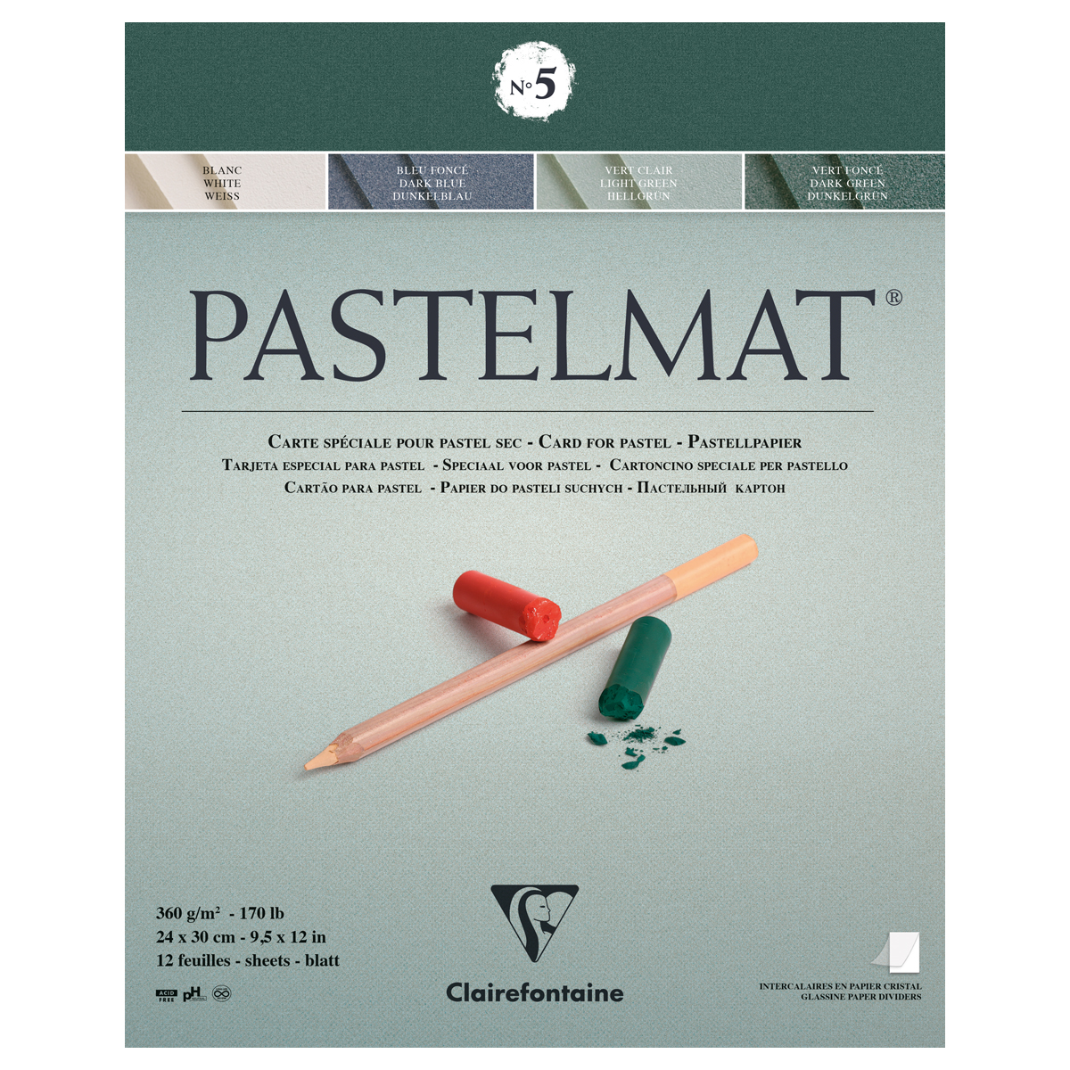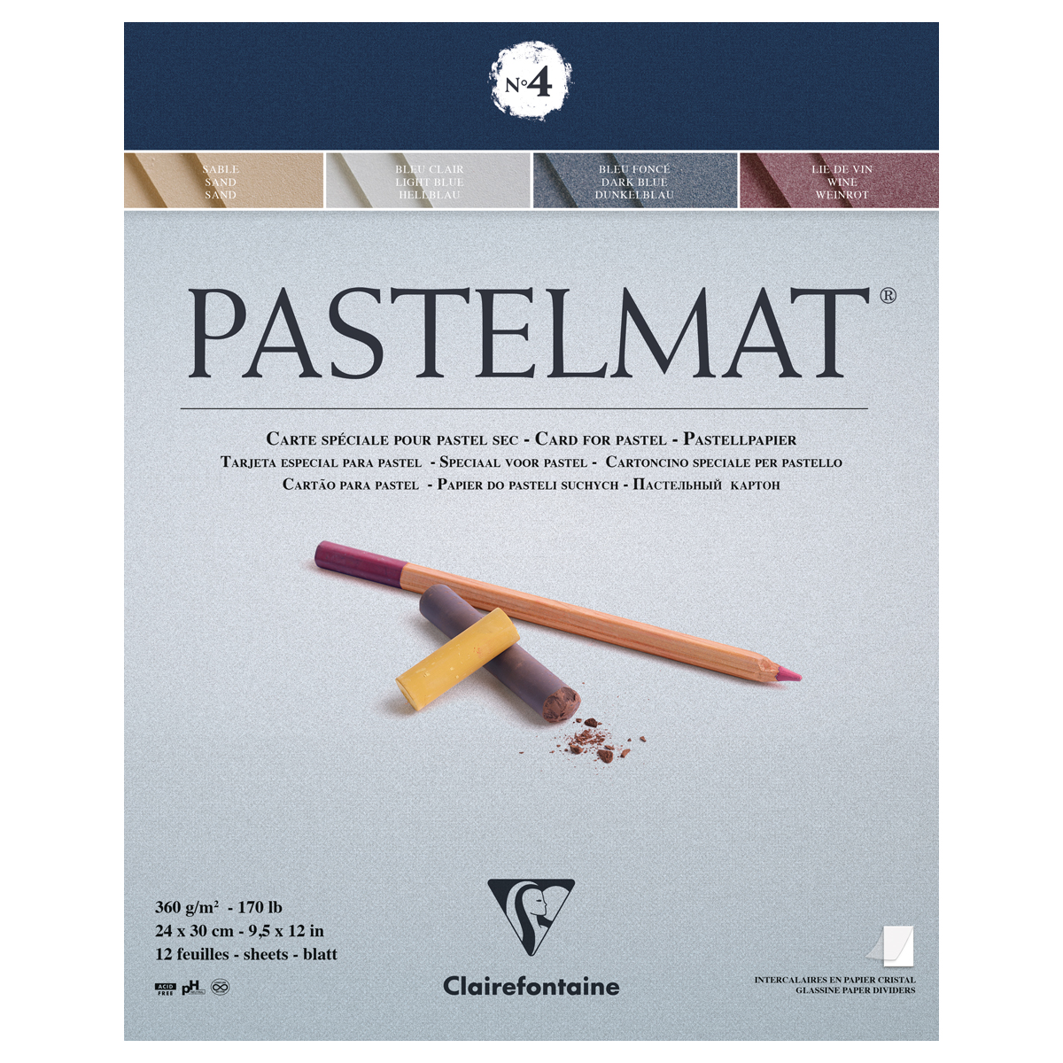 Альбом для пастели, 12л., 240*300мм, на склейке Clairefontaine "Pastelmat", 360г/м2, бархат, цв. блок