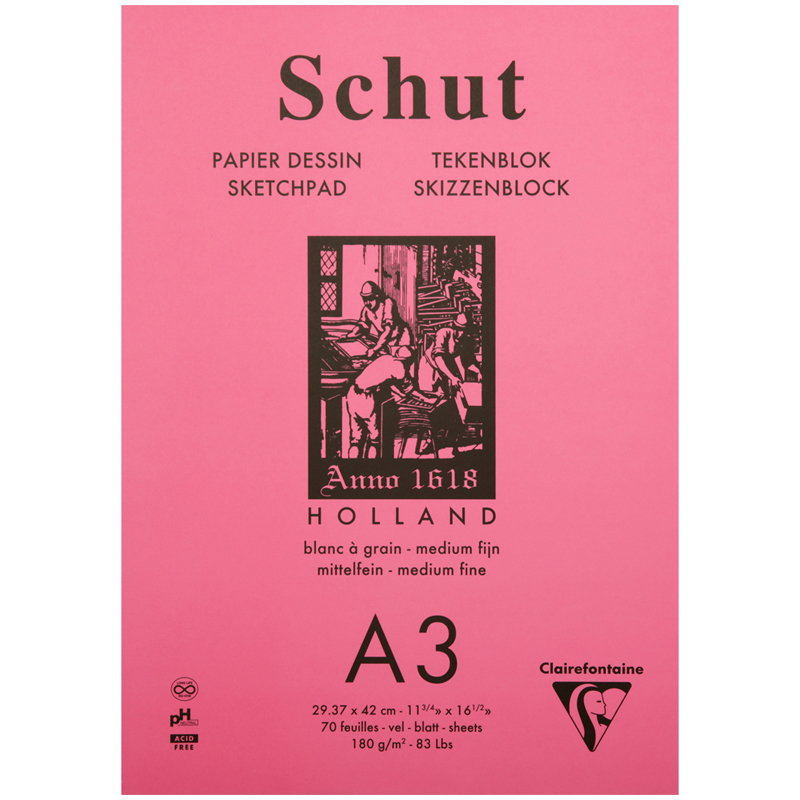 Скетчбук для эскизов и зарисовок 35л., А3 Clairefontaine "Petit Grain", на склейке, среднее зерно, 180г/м2,