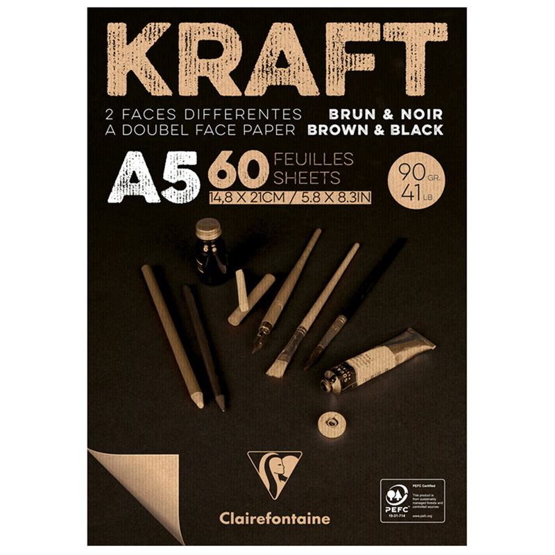 Скетчбук - блокнот 60л., А5 Clairefontaine "Kraft", на склейке, верже,черный/крафт, 90г/м2