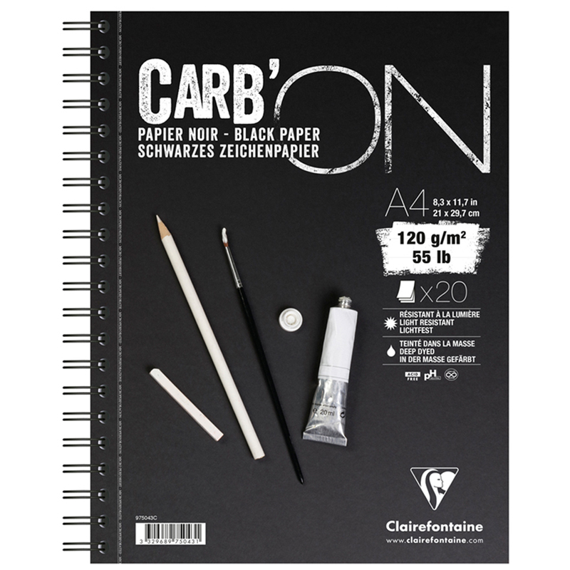Скетчбук-тетрадь 20л., А4 Clairefontaine "Carb ON", на гребне, мелкозерн., черный, 120г/м2