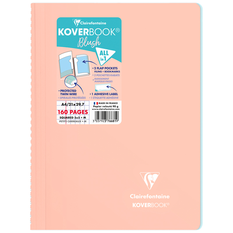 Тетрадь 80л., А4, клетка на гребне Clairefontaine "Koverbook Blush", пластиковая обложка, пудровая, 90г/м2