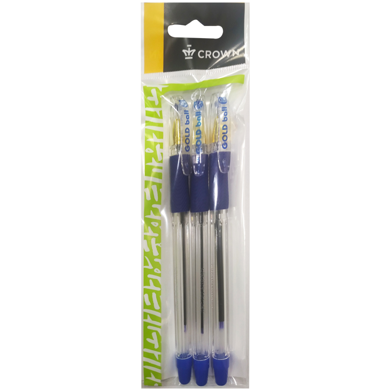 Набор шариковых ручек Crown "Gold Ball" 3шт., синие, 0,5мм, грип, европодвес