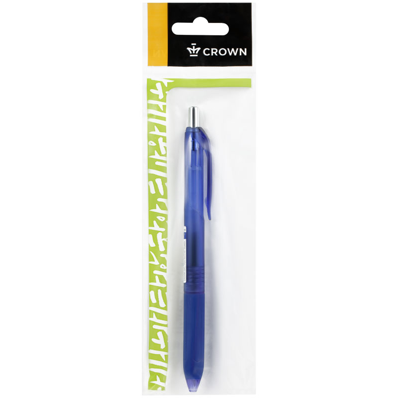 Ручка шариковая автомат. Crown "Quick Dry" синяя, 0,5мм, грип, гибрид. чернила, пакет, европодвес