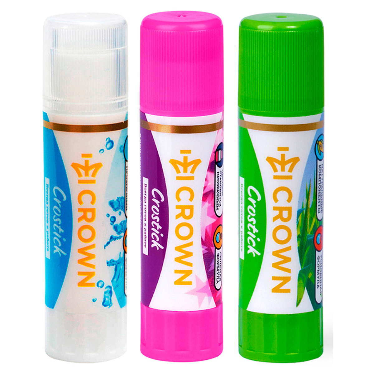 Клей-карандаш Crown, 08г, ПВП, 3шт., ассорти (Crystal+Expert+Indicator), пакет ПВХ
