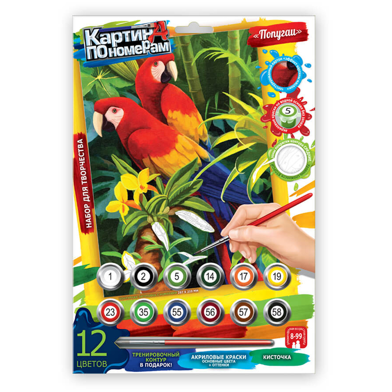 Картина по номерам Danko toys "Попугаи", А4, картон, европодвес