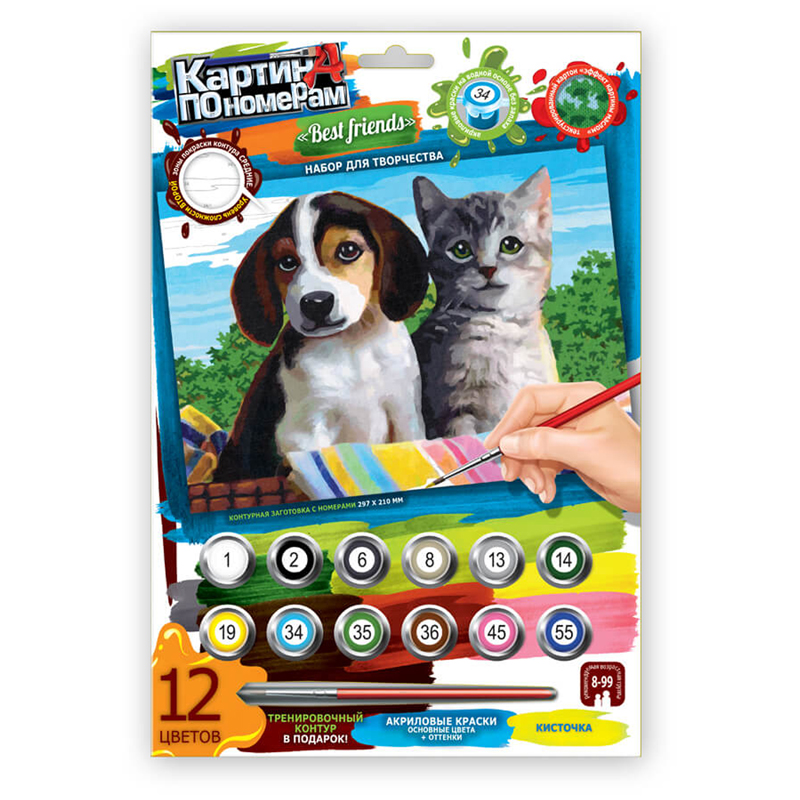 Картина по номерам Danko toys "Щенок и котенок", А4, картон, европодвес