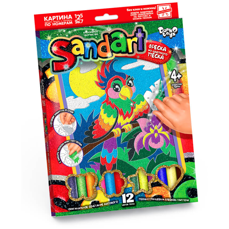 Фреска-картина из песка Danko toys "Sand Art. Попугай", картонная коробка