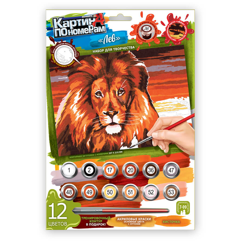 Картина по номерам Danko toys "Лев", А4, картон, европодвес