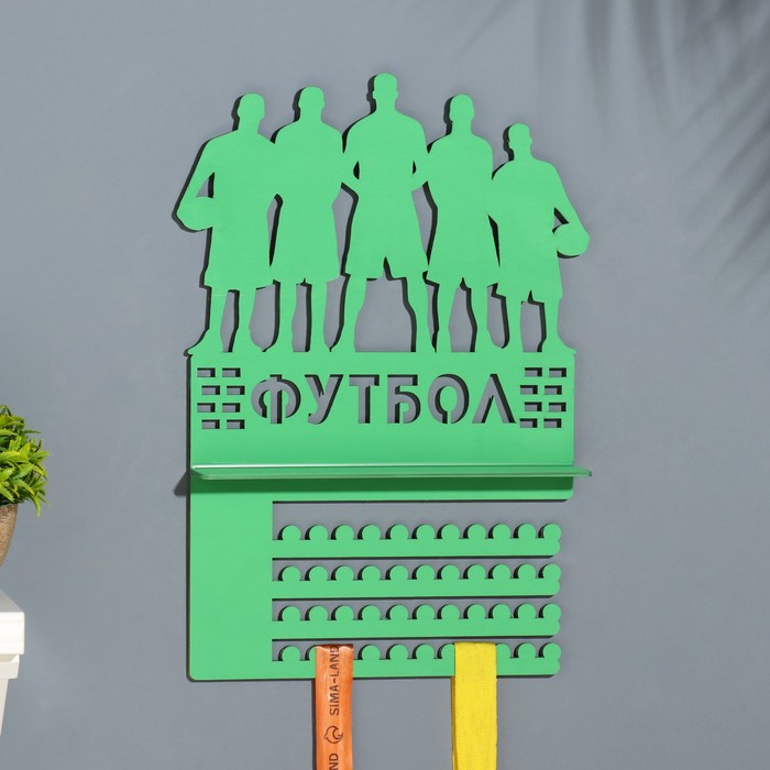 Медальница с полкой "Футбол" зеленый цвет, 42,5х27,5 см