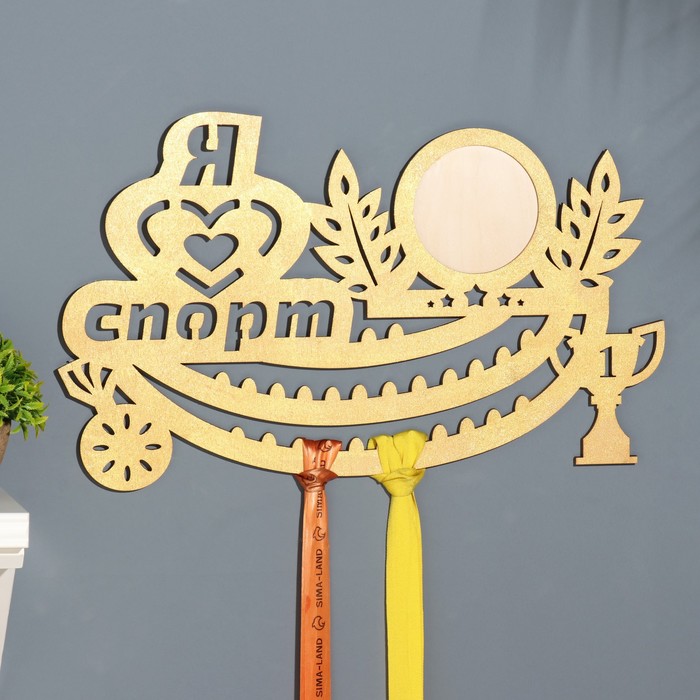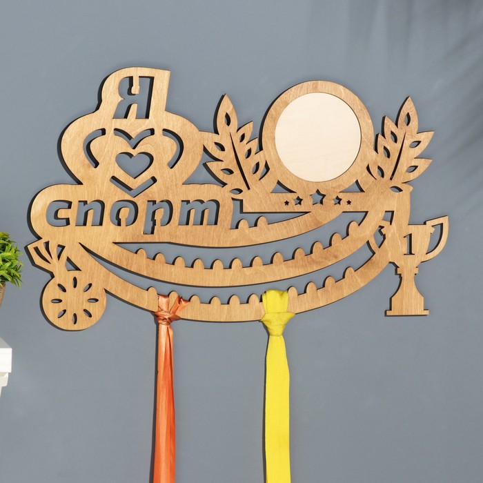Медальница с фото "Я люблю спорт!" бежевый цвет, 47х27,5 см