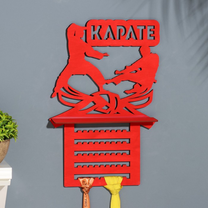Медальница с полкой "Карате" красный цвет, 42,5х27,5 см