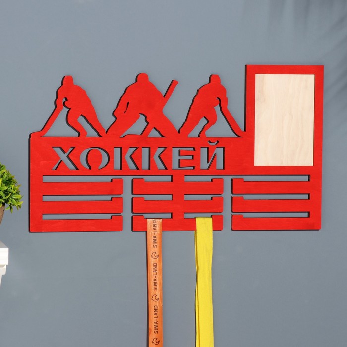 Медальница с фото "Хоккей" красный цвет, 47х27,5 см