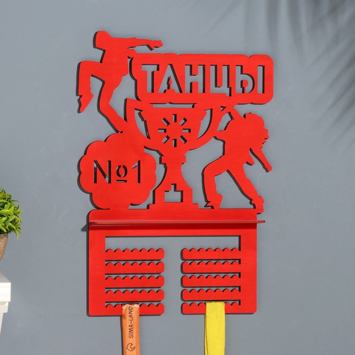 Медальница с полкой "Танцы" красный цвет, 42,5х27,5 см
