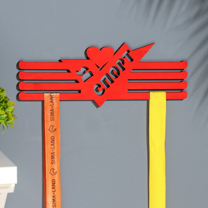 Медальница "Я люблю спорт" красный цвет, 28х12 см