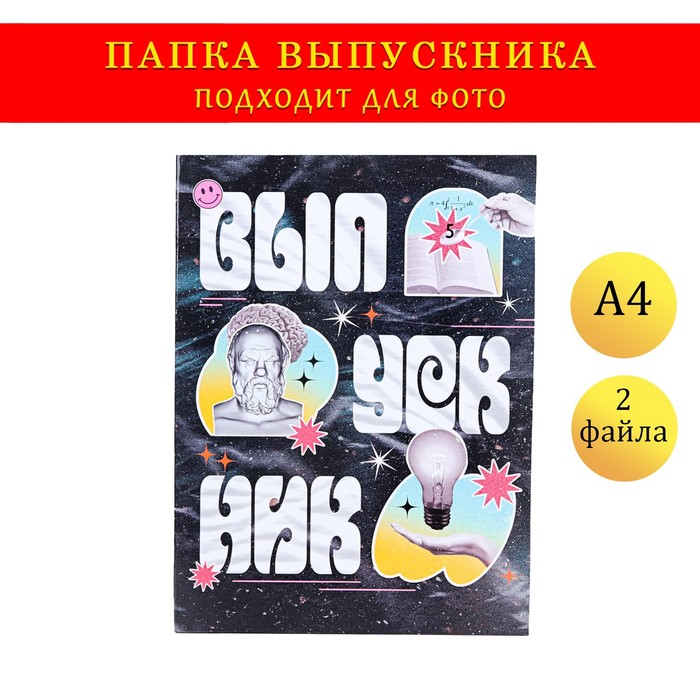 Папка с двумя файлами А4 "Выпускник" коллаж на черном фоне