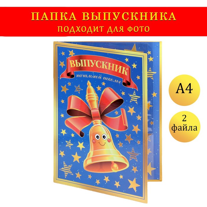 Папка с двумя файлами А4 "Выпускник начальной школы" колокольчик и синий фон