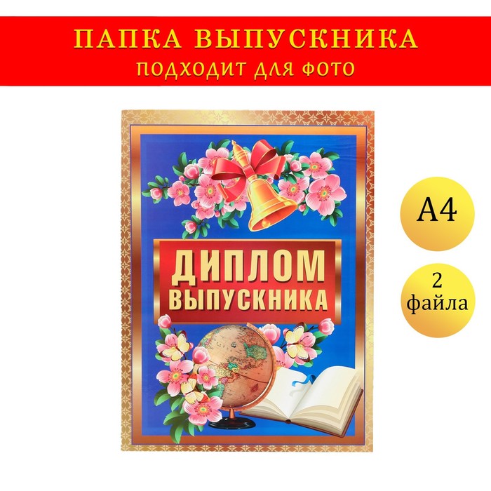 Папка с двумя файлами А4 "Выпускник" голубой фон, канцелярия