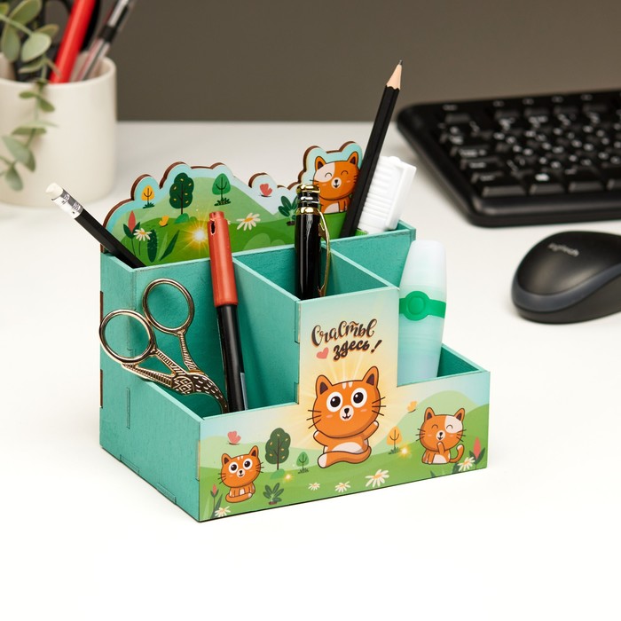 Органайзер для канцелярии "Счастье здесь!" 4 отделения 15х10х14