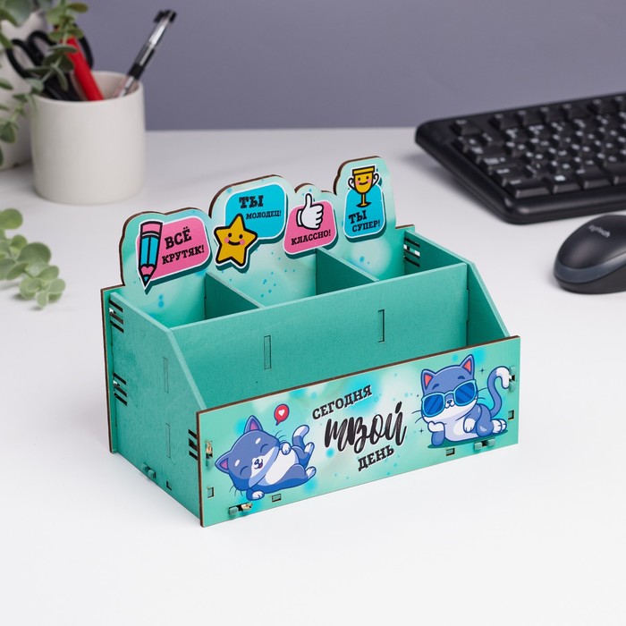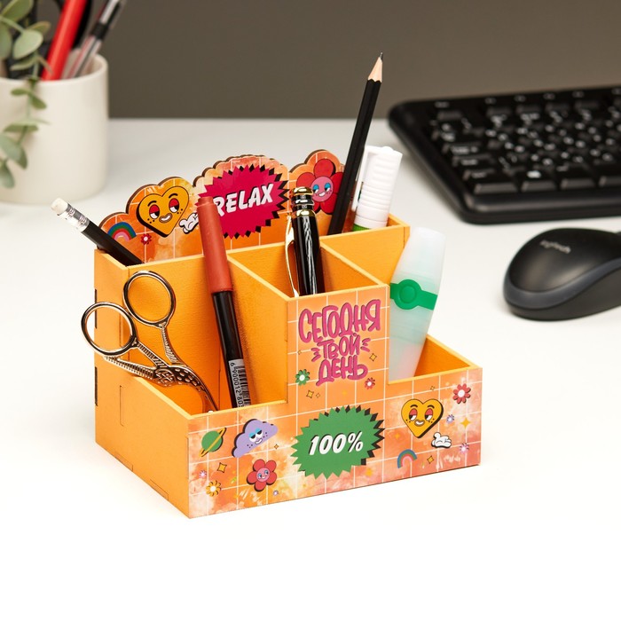 Органайзер для канцелярии "Сегодня твой день!" 4 отделения 15х10х14