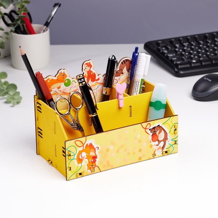 Органайзер для канцелярии "Весёлые зверята" 4 отделения 21х11х14,5