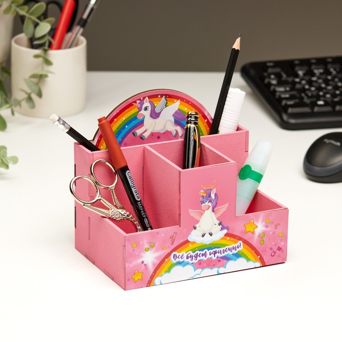 Органайзер для канцелярии "Единорожки" 4 отделения 21х11х14,5