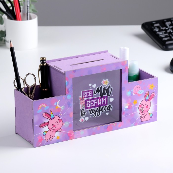 Органайзер для канцелярии с копилкой "Все мы верим в чудеса!" 28х8,5х14 см