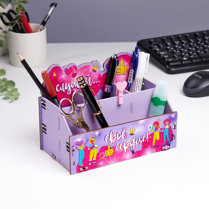 Органайзер для канцелярии "Слушай своё сердце!" 4 отделения 21х11х14,5