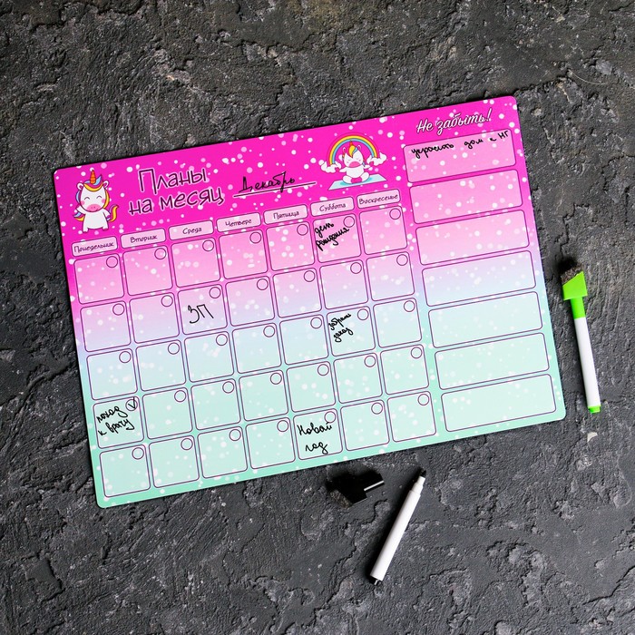 Планер магнитный с маркером "Единорожка", 25 х 35 см