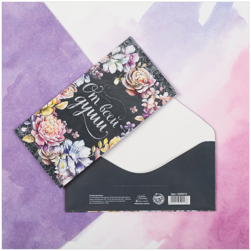 Конверт для денег Дарите Счастье "От всей души", 80*165мм, УФ-лак