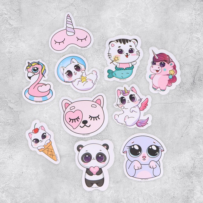 Наклейки-стикеры «Котики», 10 шт, 7 × 7 см