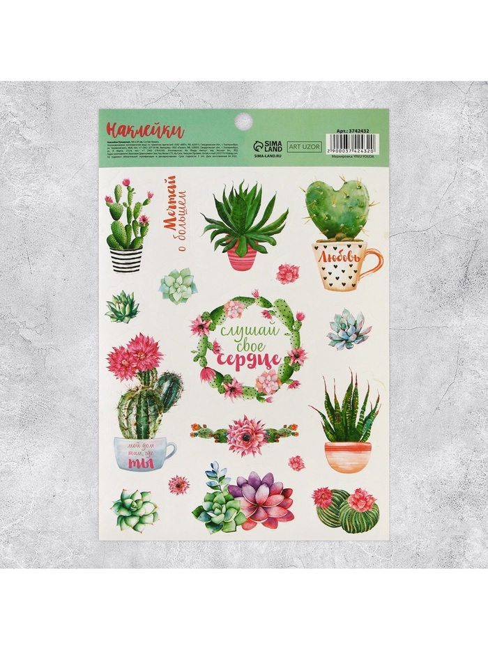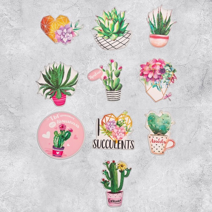 Наклейки-стикеры «Суккуленты», 7 × 7 см