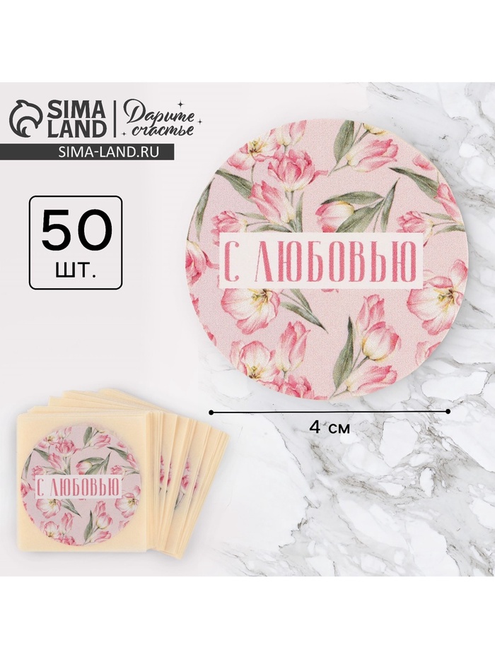 Наклейки для бизнеса и подарков «С любовью», 50 шт, 4 х 4 см
