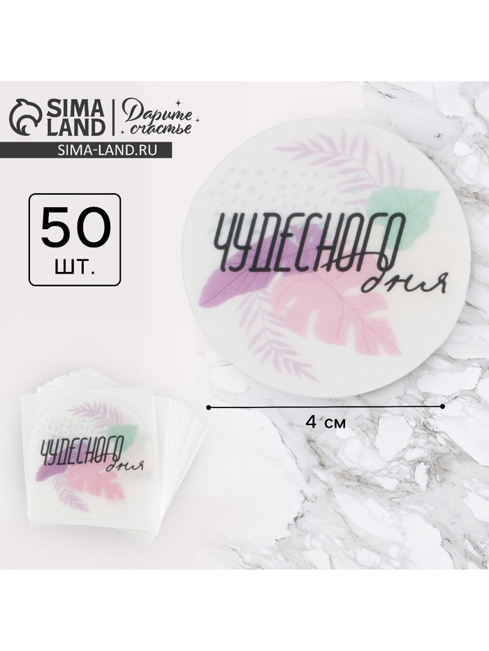 Наклейки для бизнеса и подарков «Чудесного дня», белая основа, 50 шт, 4 х 4 см