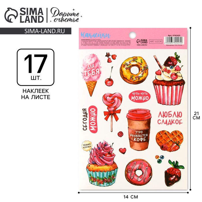 Наклейки детские бумажные «Люблю сладкое», 14 х 21 см