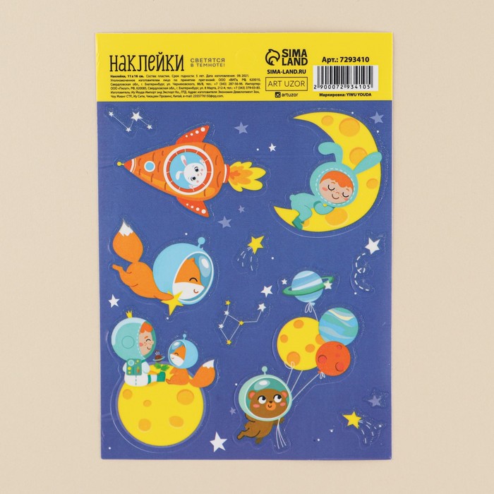 Наклейки детские со светящимся слоем «Космос», 11 х 16 см