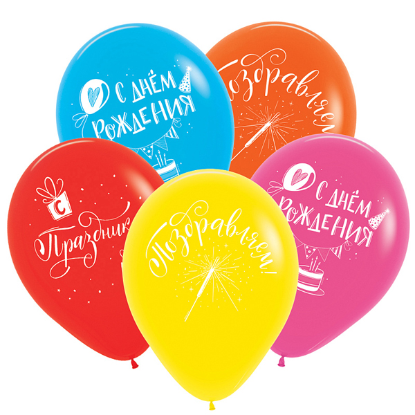Шар латексный с рисунком " Браво " 12"/30см С Днем рождения! Поздравления классические, пастель, ассорти из 5 цветов, 3 дизайнов