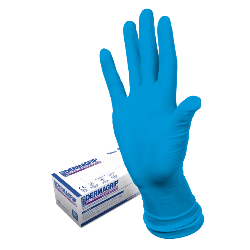 УЦЕНКА-Перчатки латексные Dermagrip "High Risk", M, 25 пар (50шт), неопудренные, сверхпроч., карт. короб