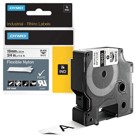 Картридж для принтеров этикеток DYMO Rhino, 19 мм х 3,5 м, лента нейлоновая, чёрный шрифт, неровная поверхность, белая, 18489