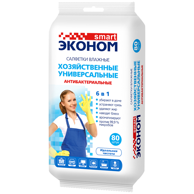 Салфетки влажные Эконом Smart, 80шт., хозяйственные, антибактериальные