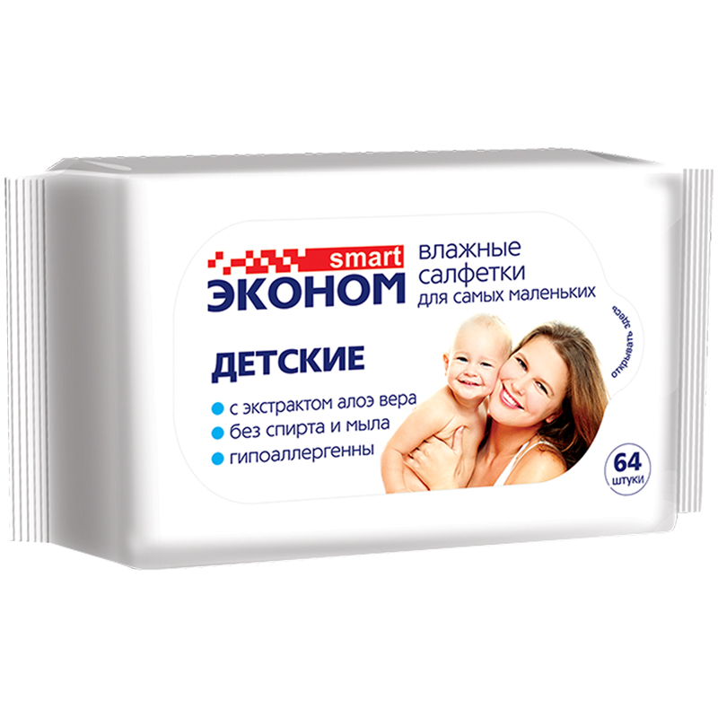 Салфетки влажные Эконом Smart, 120шт., для всей семьи, с пластиковым клапаном