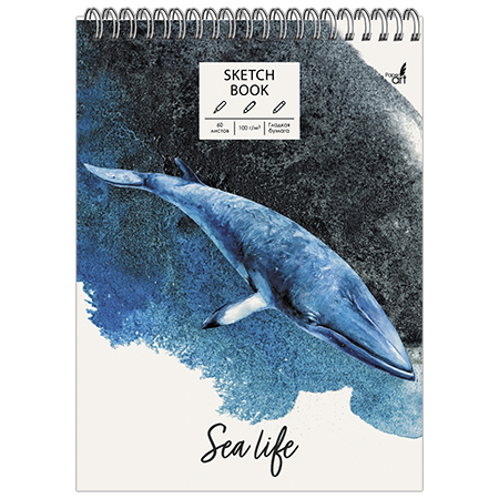 Скетчбук, белая бумага 100г/м2, А4, 60л, спираль сверху, 7БЦ, без линовки, обложка - матовый ламинированный картон, " Канц-Эксмо " Синий кит