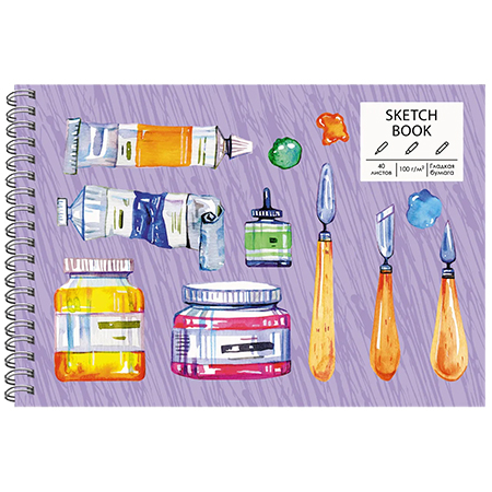 Скетчбук, белая бумага 100г/м2, А5, 40л, спираль, 7БЦ, без линовки, обложка - матовый ламинированный картон, " Канц-Эксмо " Paints