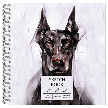 Скетчбук, белая бумага 100г/м2, 195*195мм, 80л, спираль, 7БЦ, без линовки, обложка - матовый ламинированный картон, " Канц-Эксмо " Доберман