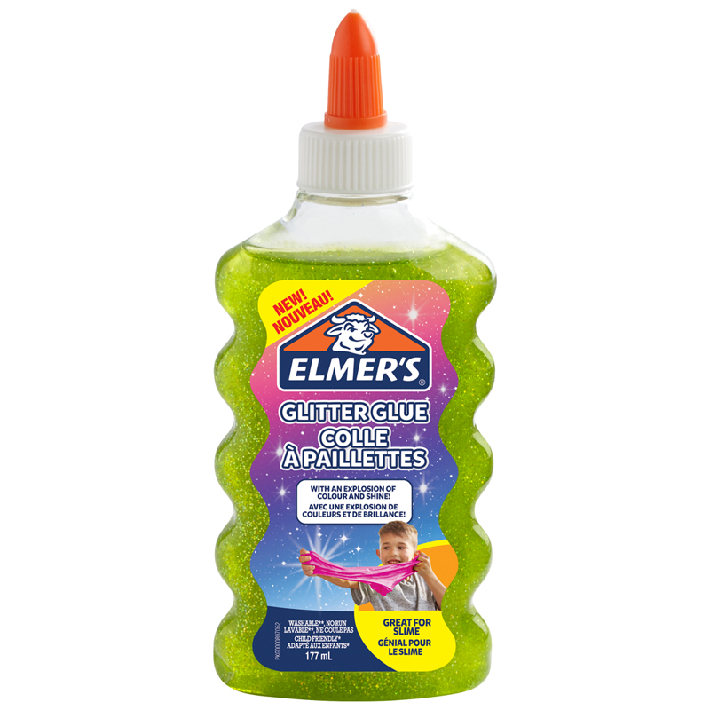 Клей для слаймов Elmers "Glitter Glue", 177мл, зеленый, с блестками, прозрачный